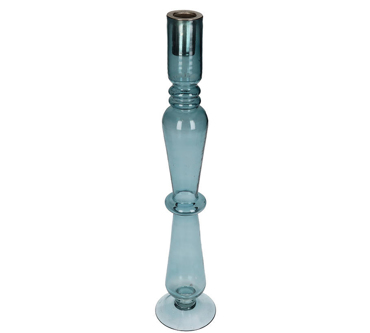 ΖΑΡΟΣ Γυάλινο Κηροπήγιο σε Μεταλλικό Μπλε Χρώμα 37cm XET-8798